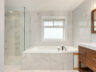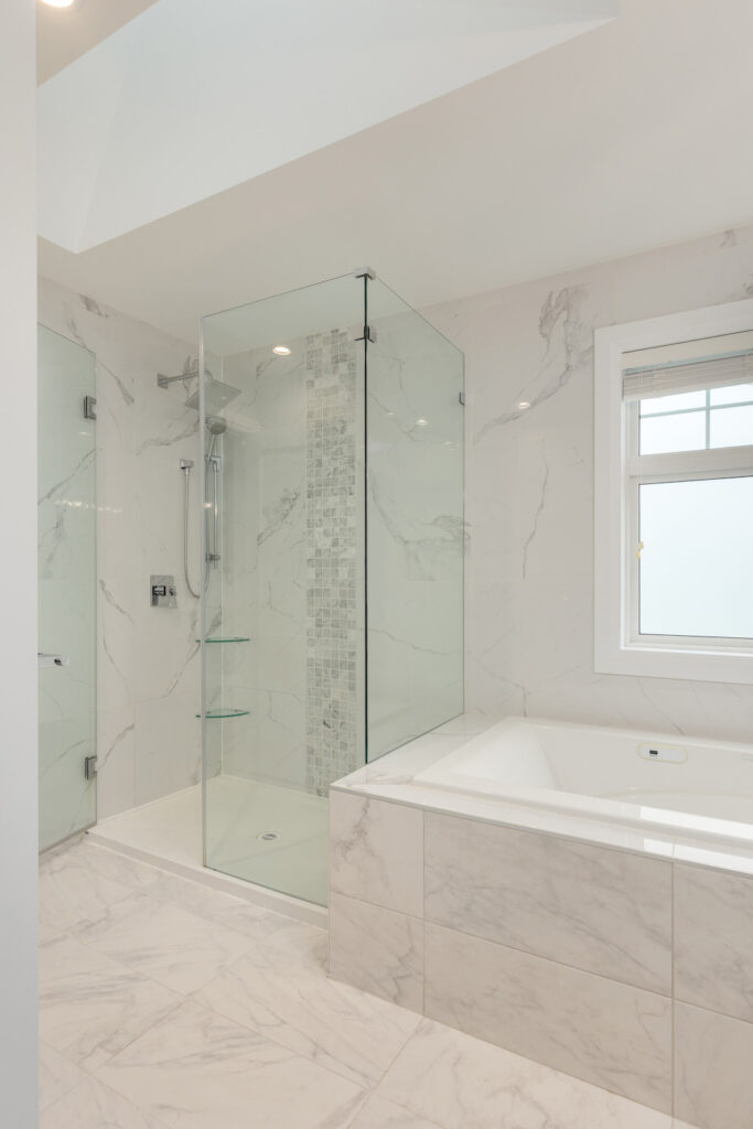 Upstairs are three bedrooms including a spacious primary with vaulted 10-ft ceiling, walk-in closet and ensuite with deep soaker tub and separate walk-in shower. Laundry also on the second level.