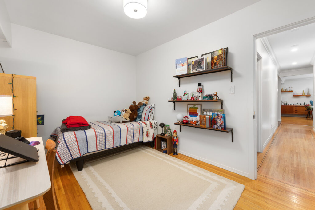 Three bedrooms and a full bathroom complete this floor.