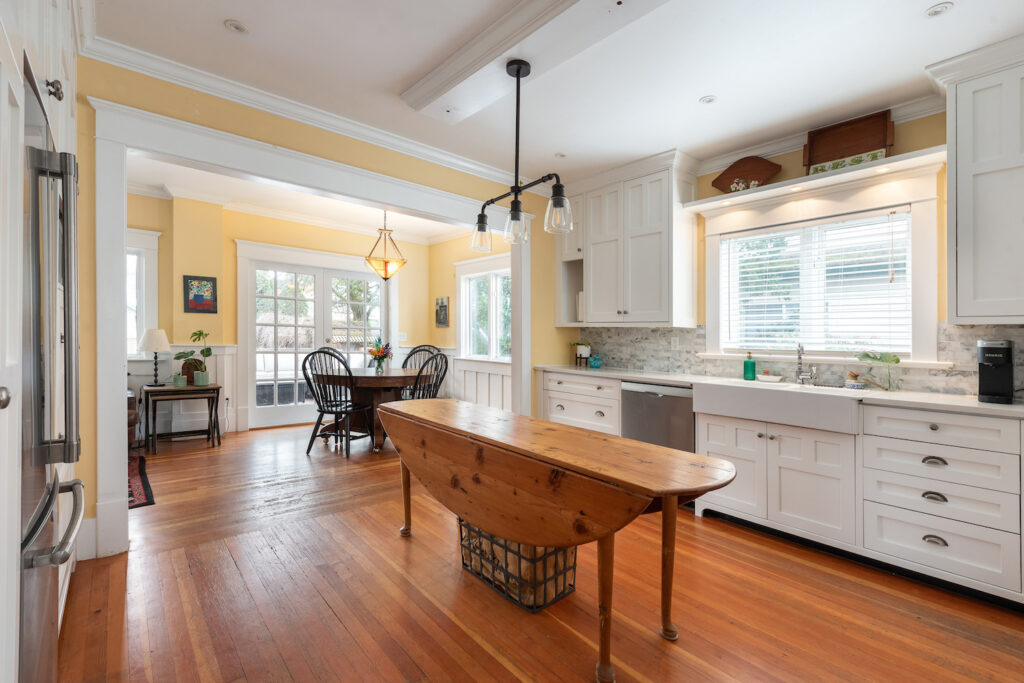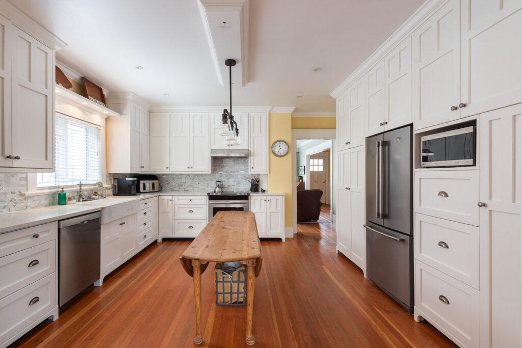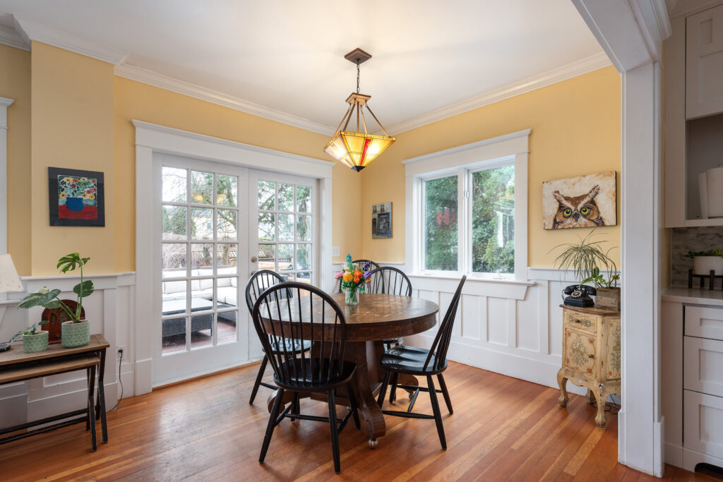 The kitchen, with its custom face-framed cabinetry, truly is the heart of the home—bright, welcoming, and effortlessly connected to the family room and dining area. It’s a space where life happens, whether it’s busy weekday mornings or relaxed weekend gatherings. French doors open out to a sunny, south-facing deck, creating a seamless indoor-outdoor flow that’s perfect for entertaining or simply enjoying quiet moments in the sun.