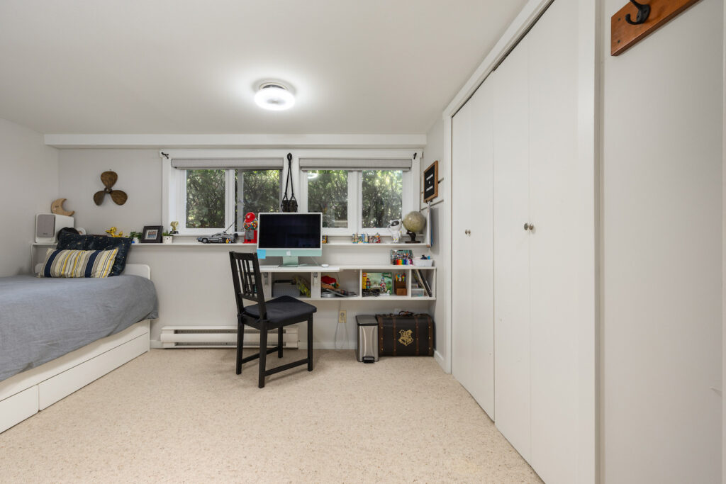 Head to the lower level and you’ll find a family room, two more bedrooms, a full bath, laundry room, office, storage and a mudroom with access to the back yard.